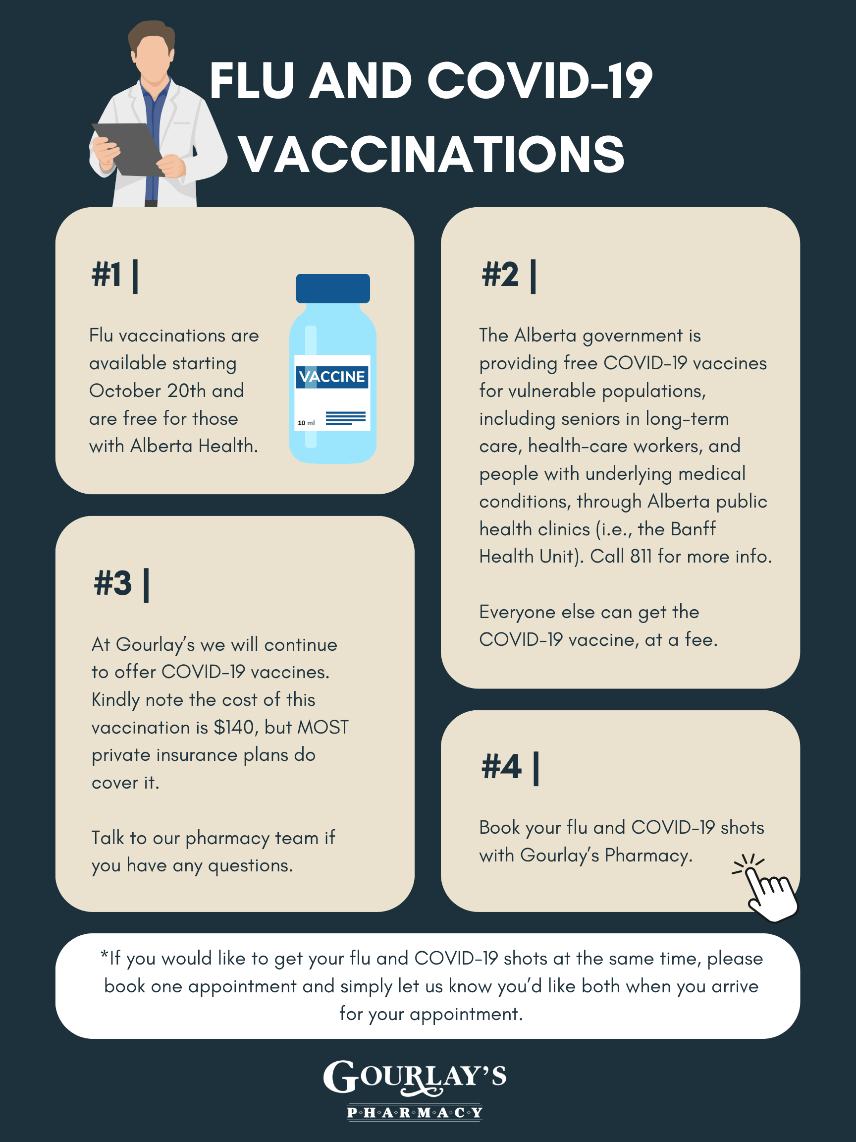 Flu vaccinations are available starting October 20th and are free for those with Alberta Health.